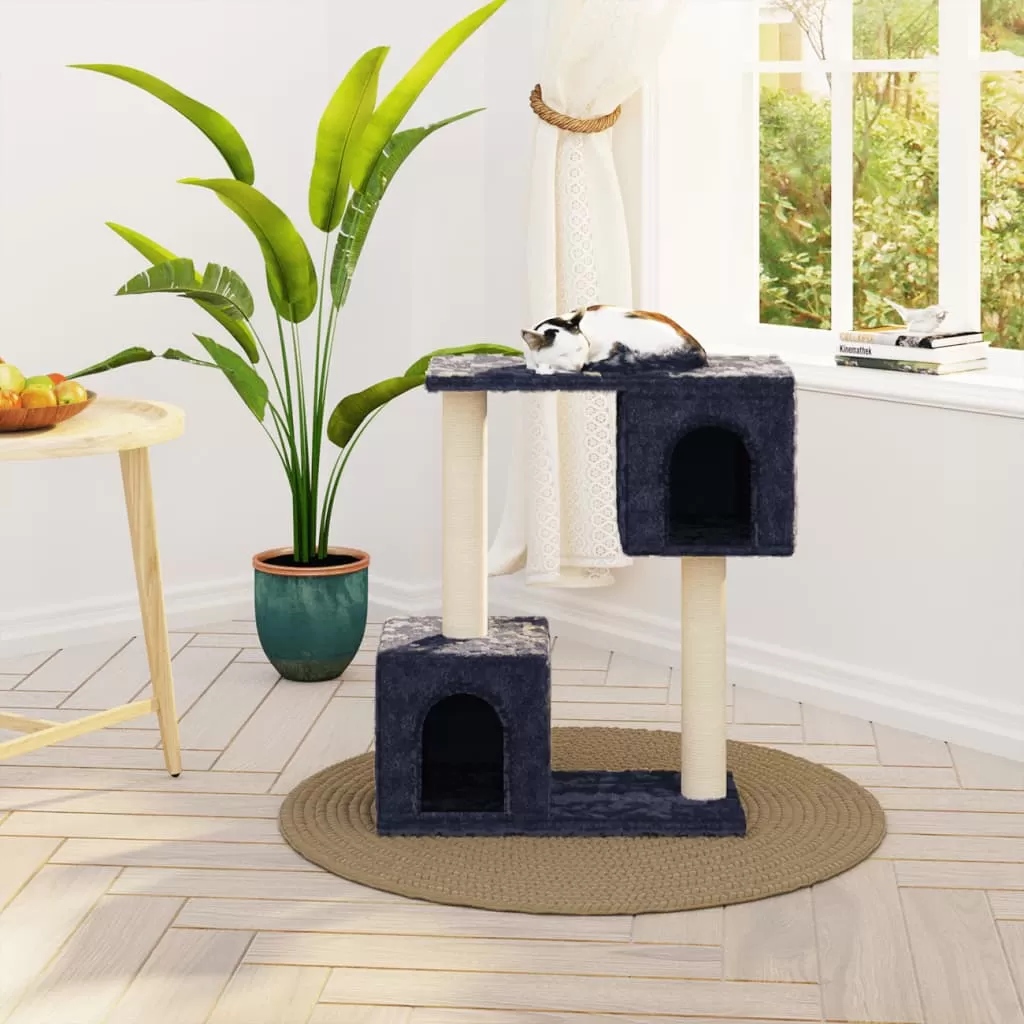 Prietenii dvs. blănoși își pot ascuți ghearele pe stâlpii de zgâriat înveliți în funie de sisal, care oferă o soluție sănătoasă pentru instinctele lor de zgâriat. În plus, se vor bucura să se urmărească, sărind în sus și în jos, în acest centru de joacă distractiv. Când s-au bucurat de suficient timp de joacă, prietenii dvs. vor adora să se odihnească pe platformele superioare, unde au o perspectivă mai bună. În plus, se pot ascunde și în căsuța primitoare pentru a trage un pui de somn sau pentru relaxare, pe platforma confortabilă de pluș.