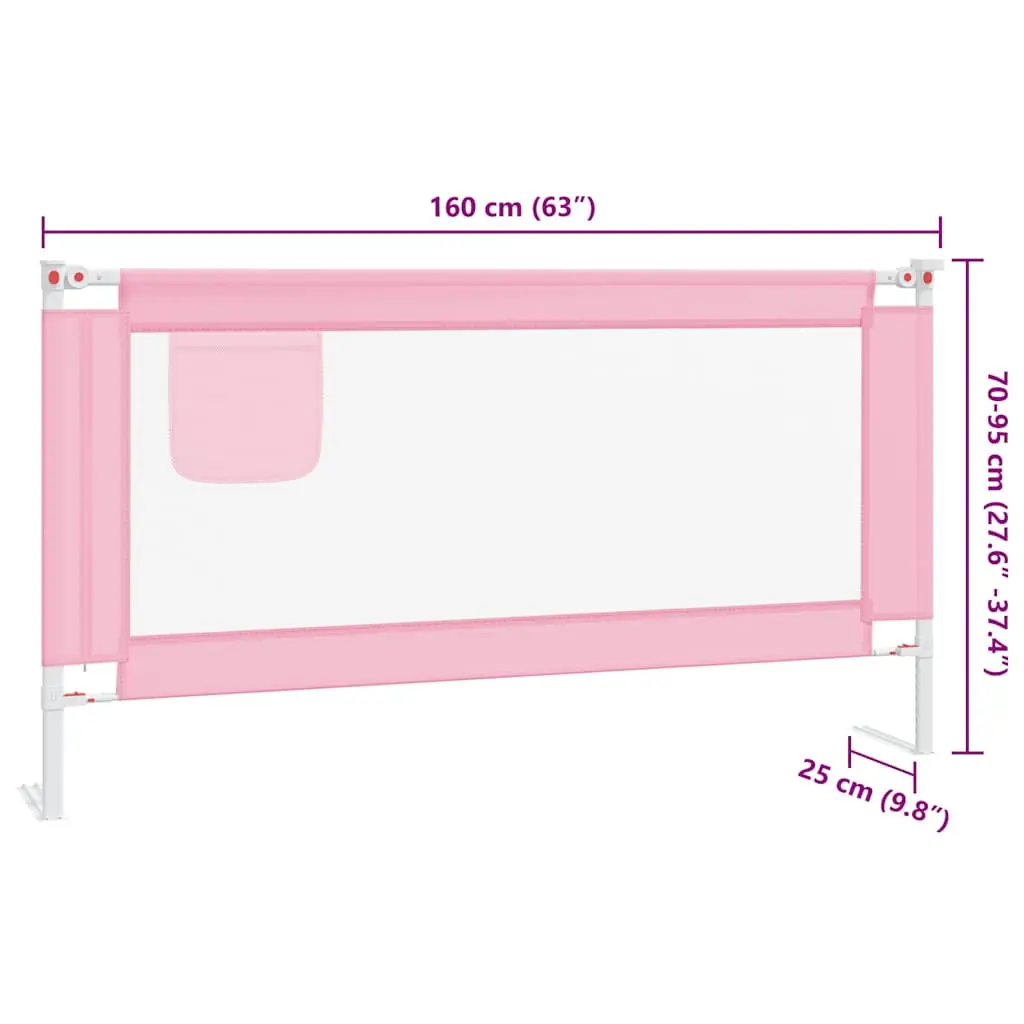 Balustradă de protecție pat copii, roz, 160x25 cm, textil