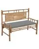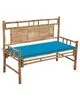 Banca de exterior este proiectată cu spătar, fiind confortabilă pentru lectură sau odihnă. Realizată din bambus rezistent la intemperii și impermeabil, banca de grădină este durabilă și stabilă. De asemenea, este ușor de curățat cu o cârpă umedă. Mai mult, perna inclusă oferă un plus de confort în timpul relaxării. Este fabricată din poliester 100%, care a fost tratat pentru a fi impermeabil. Fiecare pernă are două seturi de sfori, pentru o fixare mai bună pe bancă.