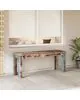 Această bancă turnbock cu picioare din lemn masiv cu granulație naturală, asigură un suport excelent. Tapițeria moale la atingere din piele de capră naturală și căptușeala groasă asigură o ședere confortabilă și fac din această bancă o opțiune practică și elegantă de ședere.