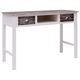 Fabricat din lemn de paulownia și lemn de plop de calitate înaltă, acest birou este robust și rezistent. Include 2 sertare și 1 compartiment deschis la mijloc, pentru păstrarea dosarelor și a altor articole de birotică organizate și la îndemână.