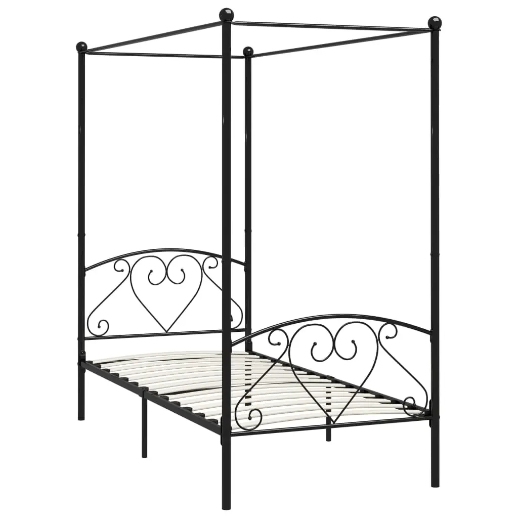Cadru de pat cu baldachin, negru, 100 x 200 cm, metal