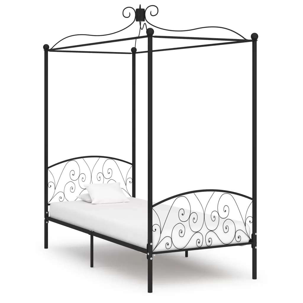Cadru de pat cu baldachin, negru, 100 x 200 cm, metal