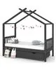 Patul este proiectat inteligent cu un cadru în stil de căsuță în copac, unde puteți agăța perdele pentru a crea intimitate pentru copilul dumneavoastră. Poate fi folosit și drept loc de lectură sau de joacă pentru copilul dvs. Fabricat din lemn masiv de pin, acest cadru de pat este extrem de robust și durabil. Lamelele solide oferă suportul necesar și sunt extrem de confortabile. Sertarul de pat inclus, cu 2 mânere, oferă spațiu de depozitare amplu pentru depozitarea hainelor împăturite, a jucăriilor etc., menținând camera curată și ordonată. Roțile cu alunecare ușoară pot funcționa atât pe podele mochetate, cât și pe cele din lemn. Acest cadru de pat este potrivit pentru o saltea de 80 x 160 cm.
