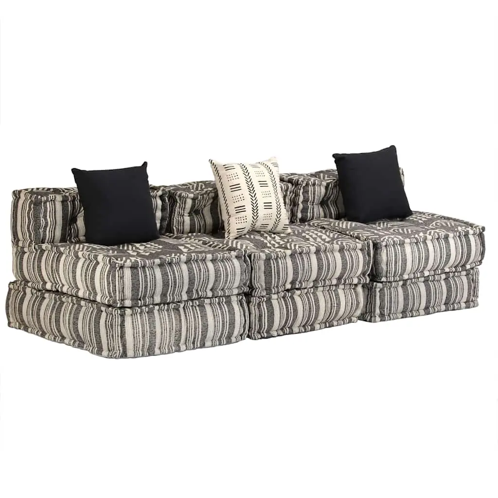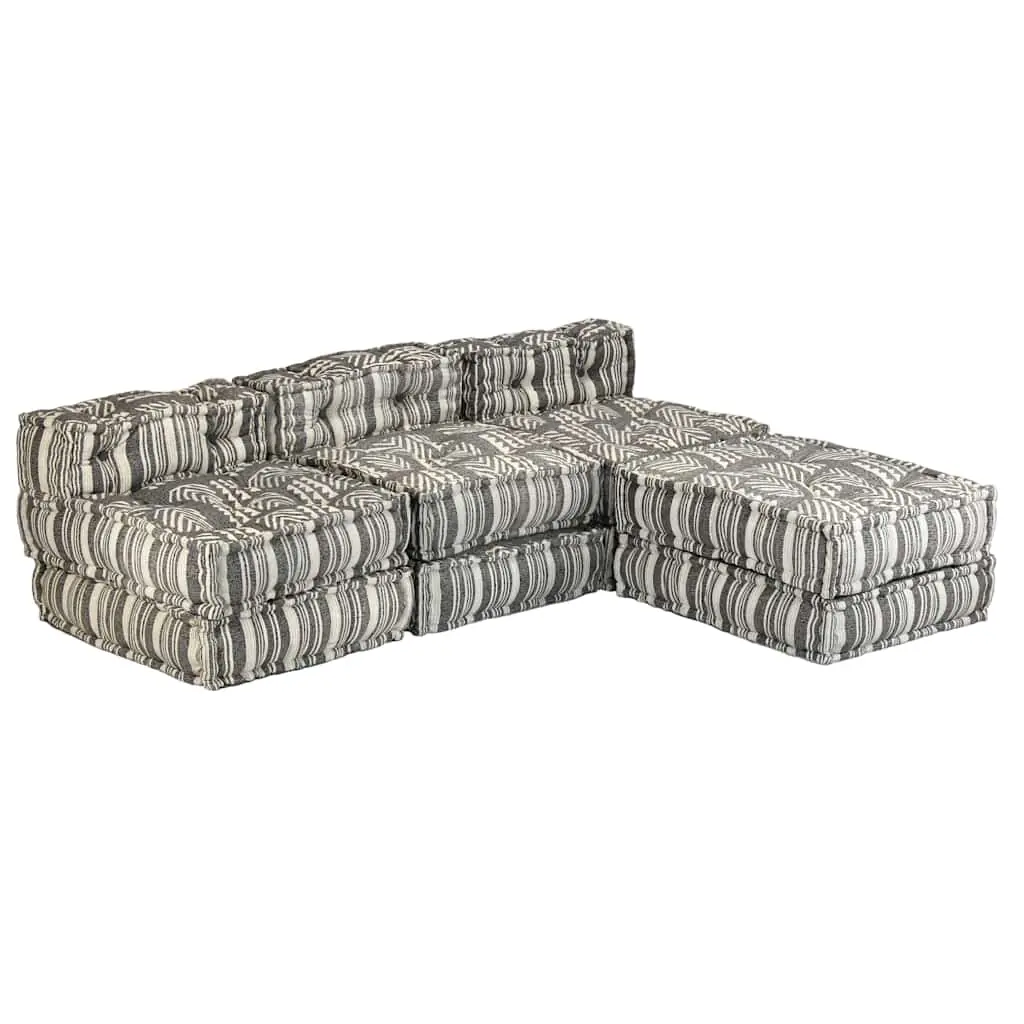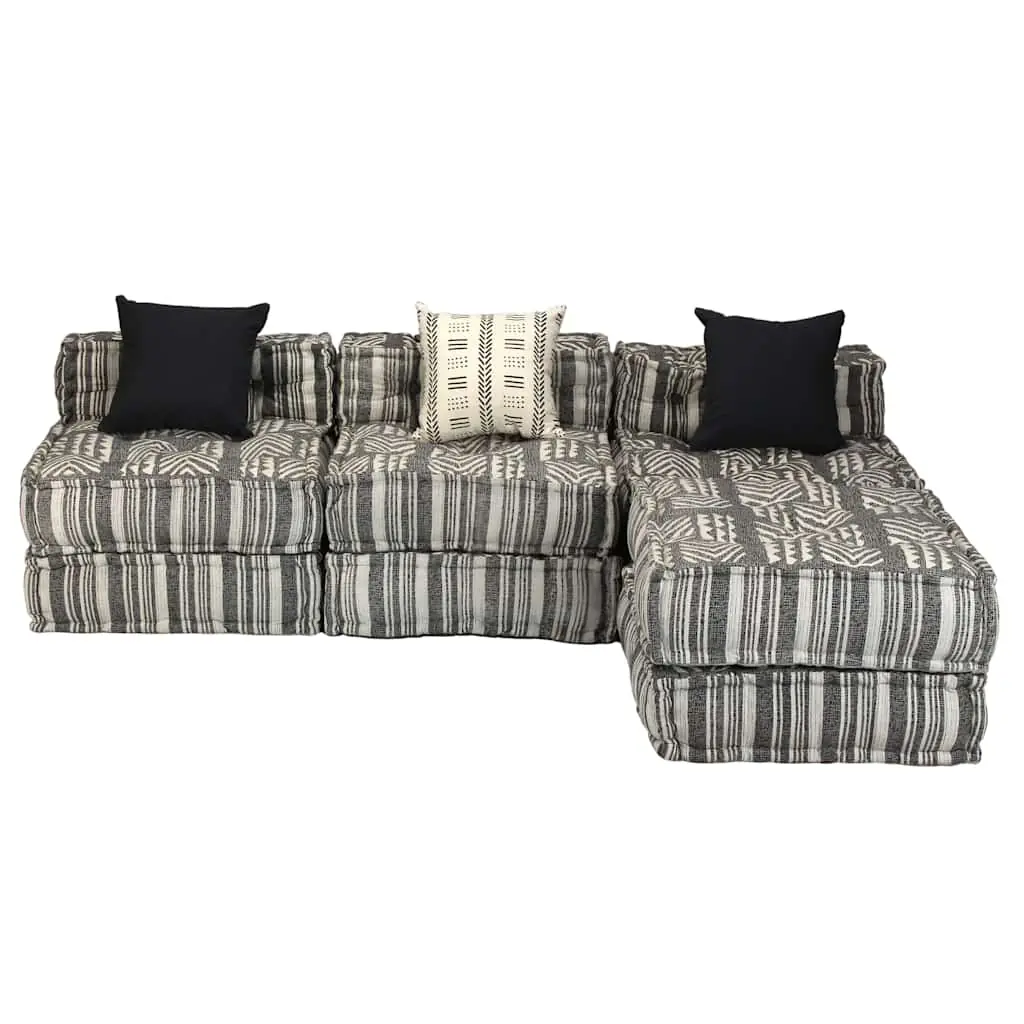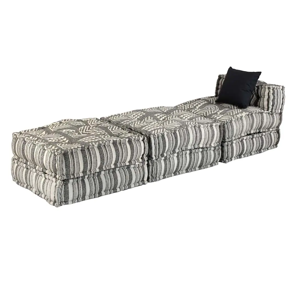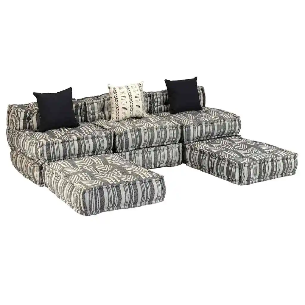 Această canapea extensibilă versatilă are un design modular. Puteți combina cu ușurință secțiunile modulare în diferite configurații și le puteți transforma într-o canapea, pat, șezlong, scaune simple sau pufuri - orice doriți! Va fi ideal pentru seara de film în familie, atunci când copiii au prieteni în vizită, pentru a juca jocuri video, dar poate fi folosit și pentru a vă bucura de vremea frumoasă, pe verandă. Datorită tapițeriei din material de bumbac și căptușelii groase, canapeaua este moale și confortabilă. Pernele decorative vor aduce un plus estetic, oferind în același timp un plus de confort.