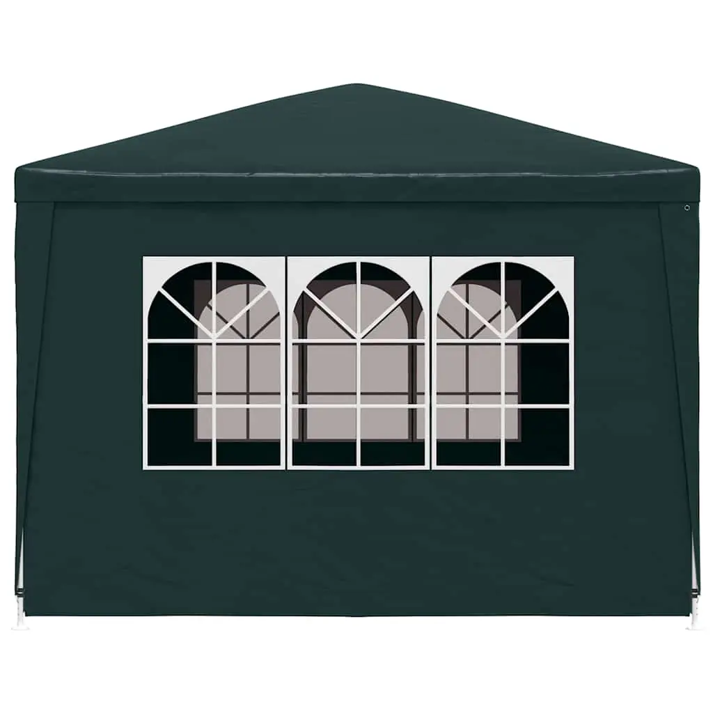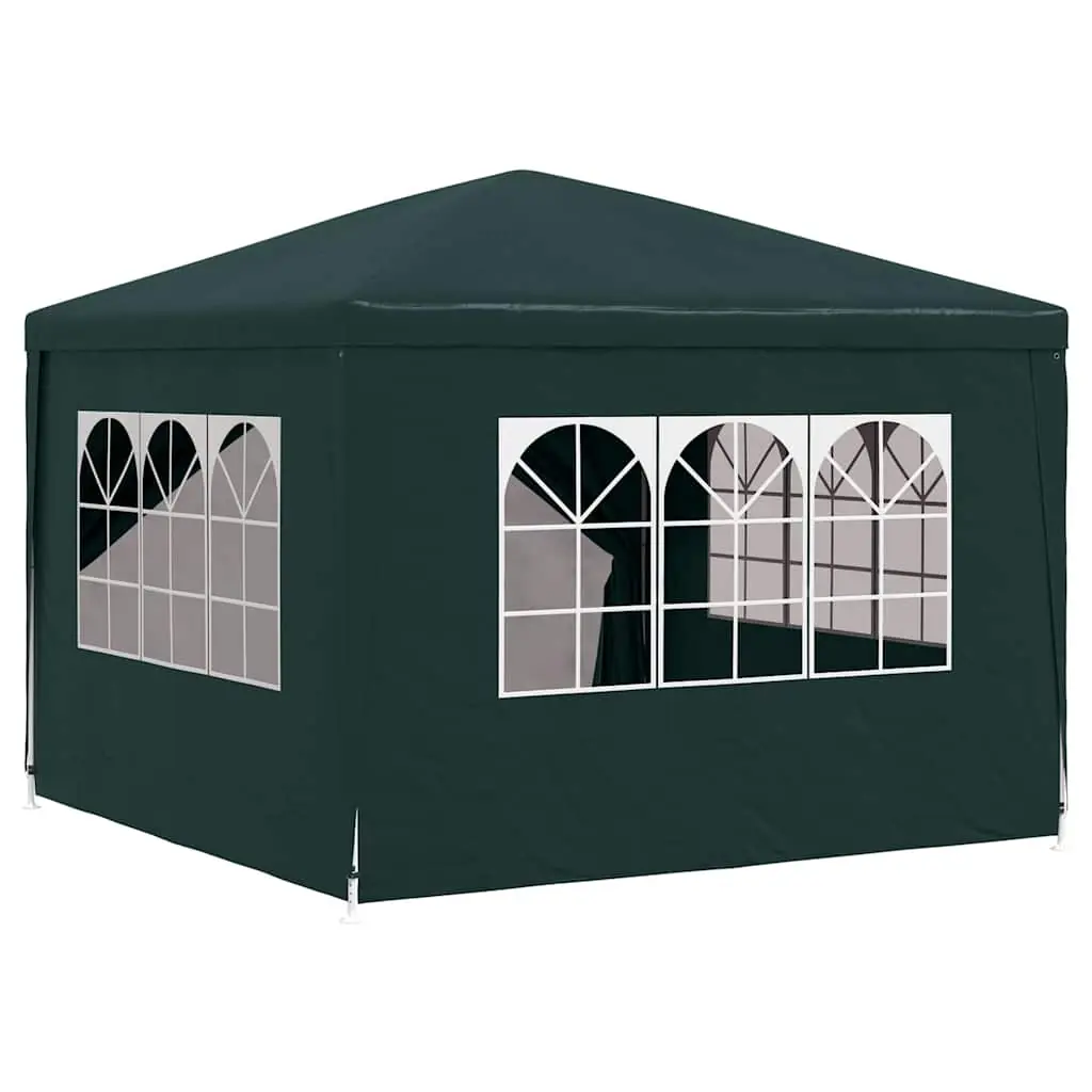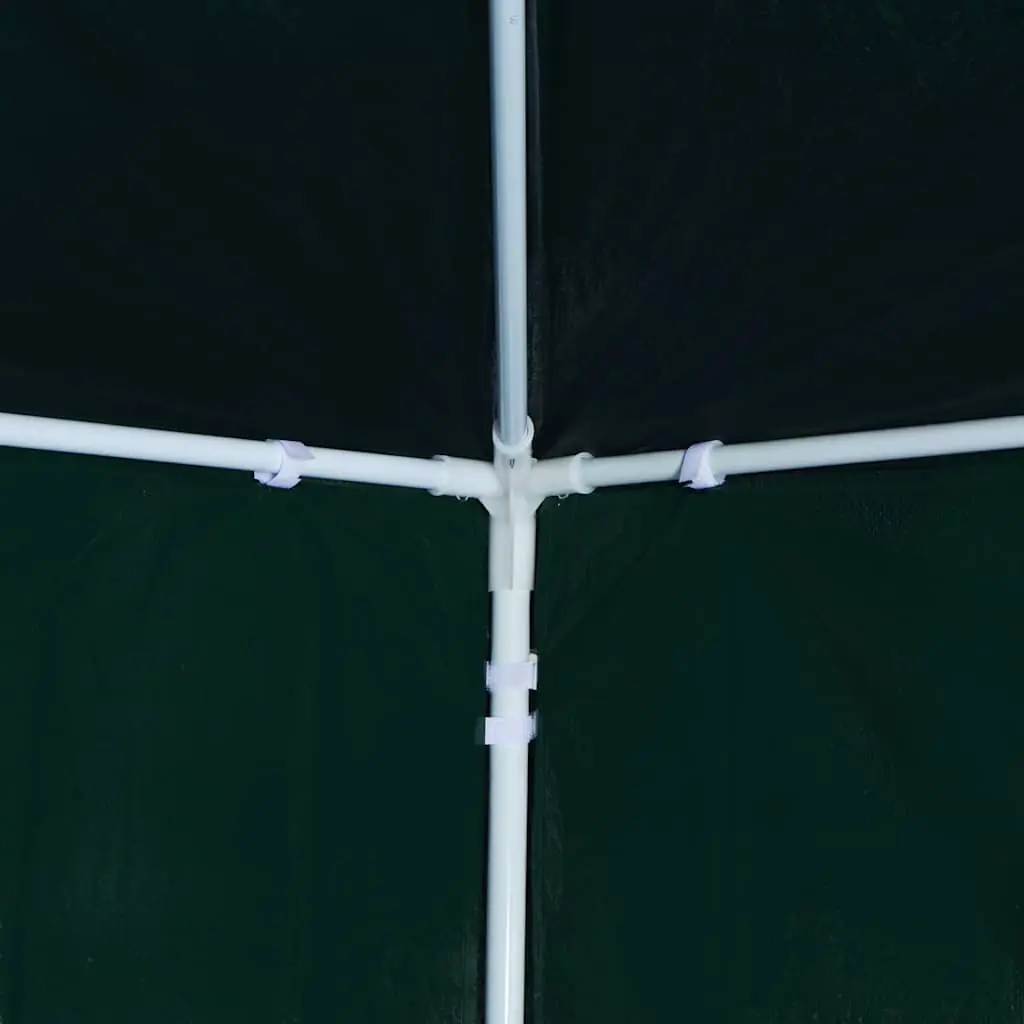 Pavilionul de grădină este realizat din polietilenă rezistentă la apă și raze UV, fiind foarte practic pentru utilizarea în exterior. Cadrul este fabricat din oțel rezistent la rugină, asigurând stabilitate și durabilitate copertinei de exterior. Cortul de petreceri este prevăzut cu panouri laterale, fiecare cu ferestre decorative, și cu o ușă cu fermoar, pentru acces ușor. Pavilionul de grădină este ușor de asamblat.