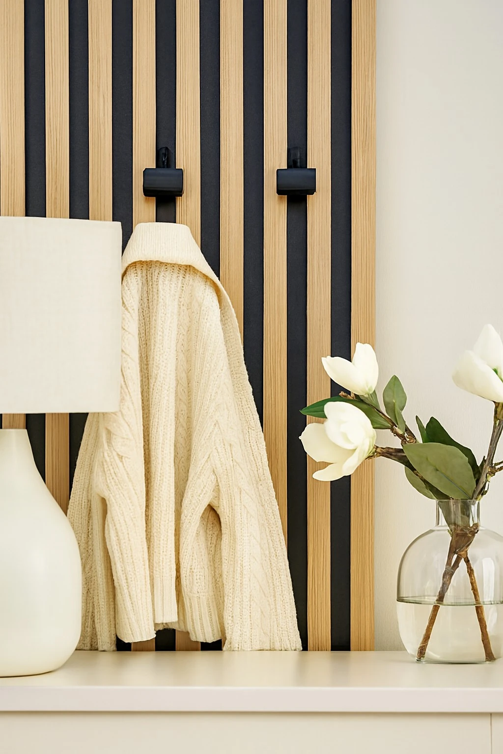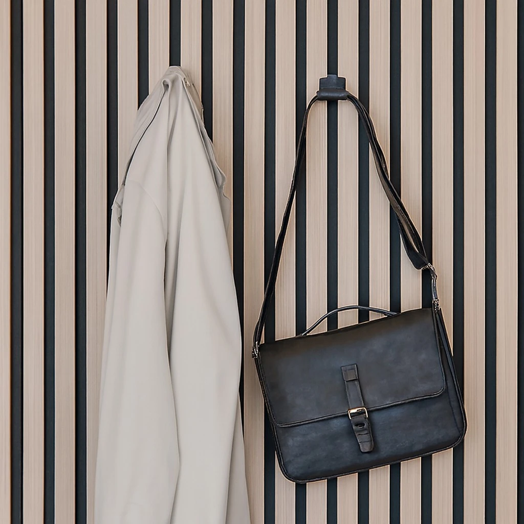 Un accesoriu practic și elegant pentru organizarea spațiului, Cuierul metalic pentru panouri riflate este format dintr-un set de două cârlige metalice, ușor de montat, concepute pentru a completa panourile acustice sau alte suprafețe de perete. Produsul se remarcă prin dimensiuni compacte și un design simplu, dar funcțional, ideal pentru holuri, birouri sau spații de locuit. Dimensiune: 2,4x3x4,3 cm. Material: metal