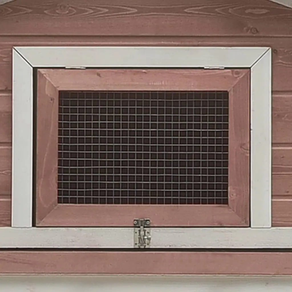 Această cușcă de iepuri oferă suficient spațiu de mișcare, în timp ce plasa de sârmă din fier cu ochiuri strânse previne comportamentele negative și accidentele. În același timp, construcția grilajului din sârmă de fier vă permite să monitorizați animalele de companie și le oferă acestora acces la aer proaspăt. Cușca de iepuri a fost construită cu un cadru din lemn de calitate superioară, fiind un adăpost rezistent și sigur, care va dura ani întregi. Acoperișul său verde protejează de ploaie, iar căsuța confortabilă este o zonă de odihnă perfectă. O rampă ușor de urcat asigură legătura dintre nivelul inferior și etaj. Datorită tăvii detașabile, cușca este ușor de curățat. Ușile se închid cu ușurință și se încuie cu zăvoare.