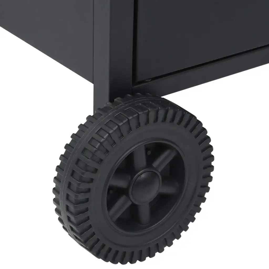 Fabricat din materiale rezistente, grătarul este foarte durabil. Dulapul de dedesubt oferă spațiu mare pentru depozitarea vaselor de gătit și a ustensilelor. Datorită celor 2 roți solide, grătarul este ușor de mutat. Pachetul de livrare include și un capac pentru a proteja grătarul de ploaie și praf.