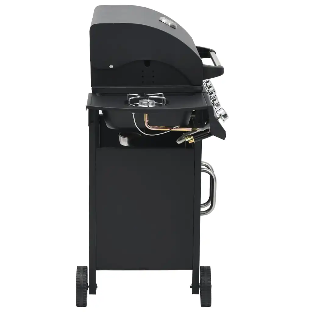 Grătarul pe gaz are un design elegant și funcțional. Are o suprafață mare de gătit și un capac rezistent, cu un termometru încorporat care afișează cu precizie temperatura de gătit. O masă laterală oferă spațiu de lucru suplimentar pentru prepararea sosurilor sau a mâncărurilor tale preferate. Este inclus și un recipient detașabil pentru picurarea grăsimii, care este ușor de curățat.