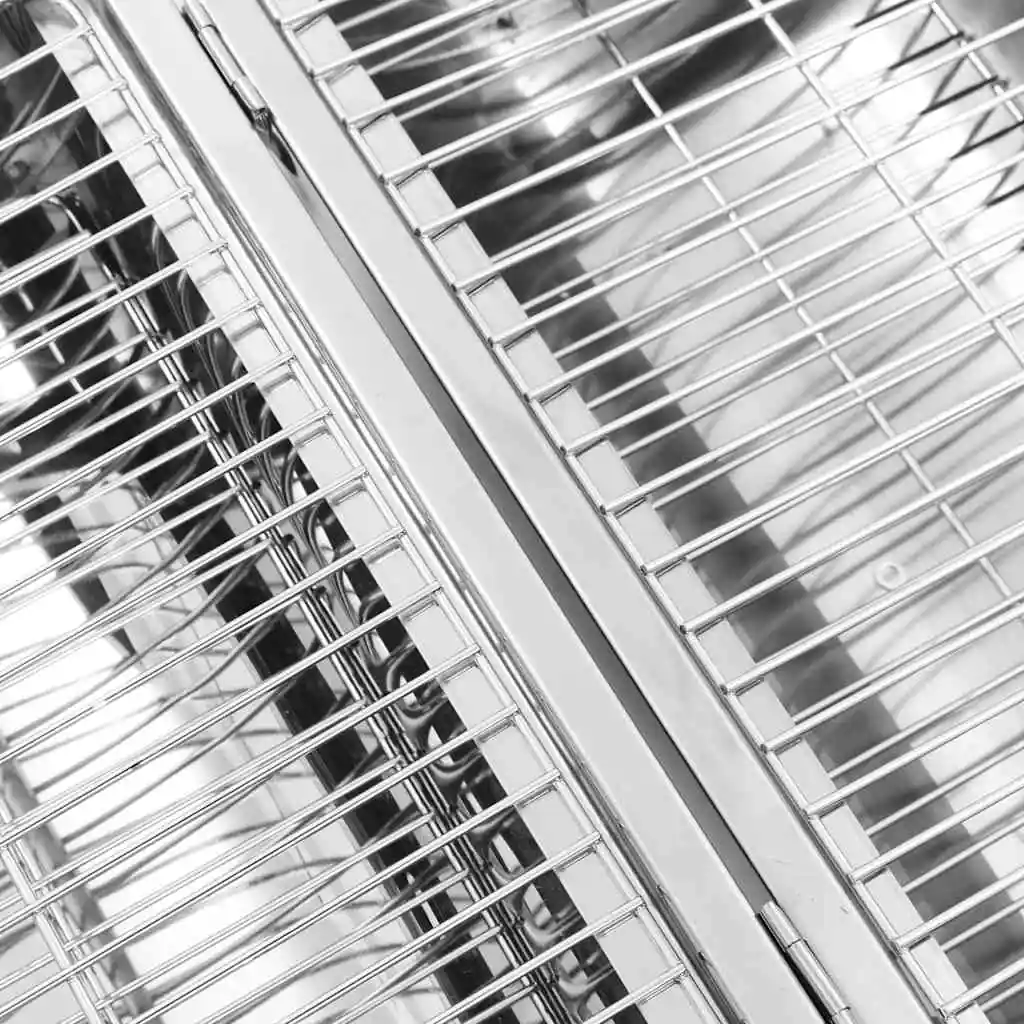 Acest grătar de camping din oțel inoxidabil este echipat cu 2 grilaje cromate, oferind spațiu suficient pentru frigerea alimentelor. De asemenea, grătarul permite folosirea grilajului cu capacul deschis sau închis. Grătarul portabil este realizat din oțel inoxidabil rezistent la rugină, cu finisaj lustruit, și este ușor de curățat după utilizare. Datorită mânerului practic, grătarul este ușor de transportat.