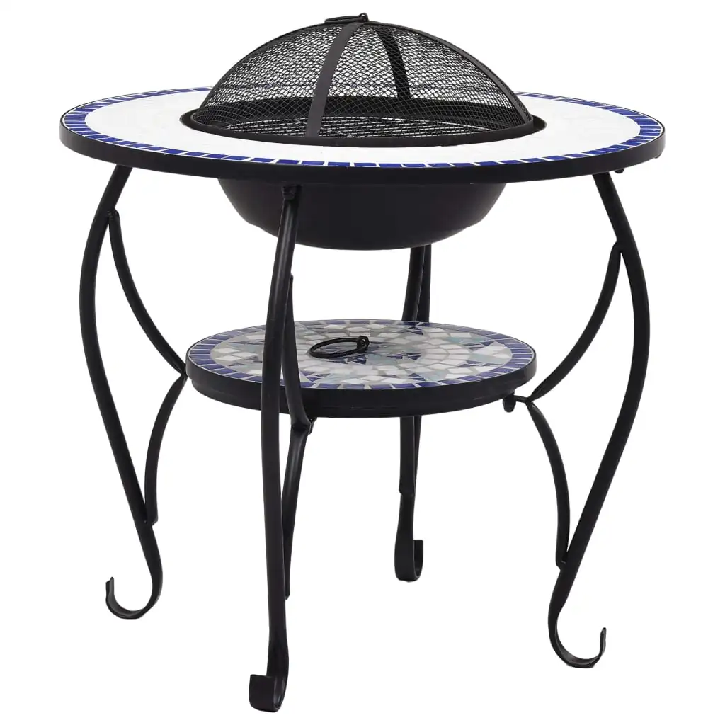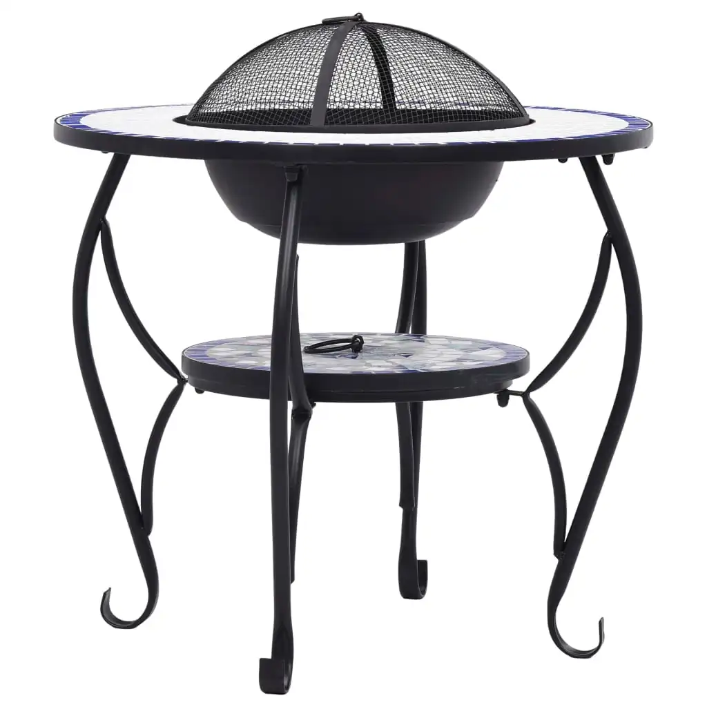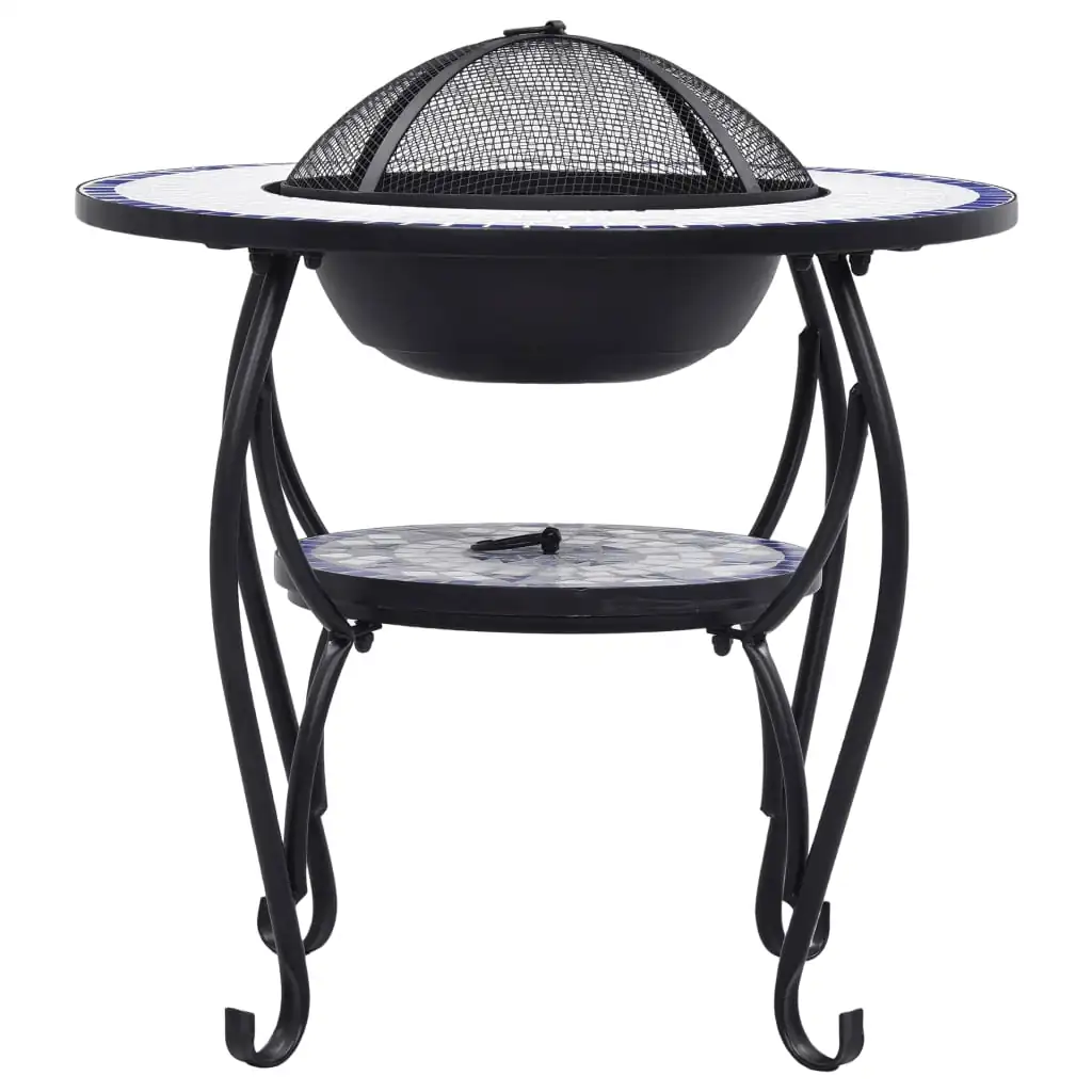 Masă cu vatră de foc, mozaic albastru și alb, 68 cm, ceramică