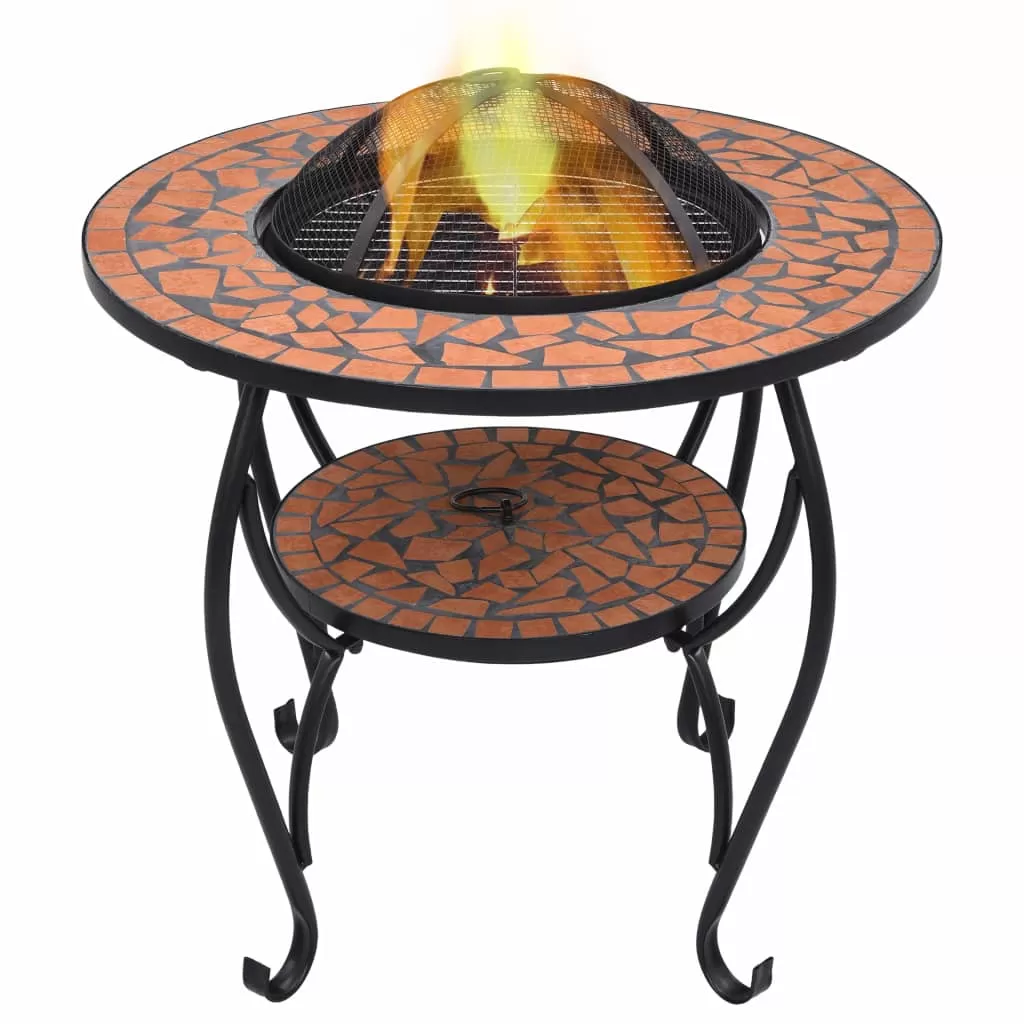 Fiind fabricată din oțel de calitate superioară, această vatră de foc este excelentă pentru absorbirea și radierea căldurii. Poate fi folosită pentru a arde lemn uscat, bușteni sau cărbuni. Bolul de foc este sprijinit pe un suport cu patru picioare. Plasa de siguranță inclusă vă permite să urmăriți flăcările, dar înconjoară focul pentru siguranță, pentru a preveni eventualele scântei sau resturi din vatră. Vătraiul poate fi utilizat atât pentru îndepărtarea capacului din plasă, cât și pentru rearanjarea buștenilor sau a cărbunelui. În plus, masa cu vatră de foc poate fi folosită și ca grătar. Suprafața sa rotundă din ceramică oferă un loc perfect pentru băuturi și accesorii de grătar. Vă rugăm să rețineți că acest produs nu este potrivit pentru a fi lăsat afară în condiții de frig.