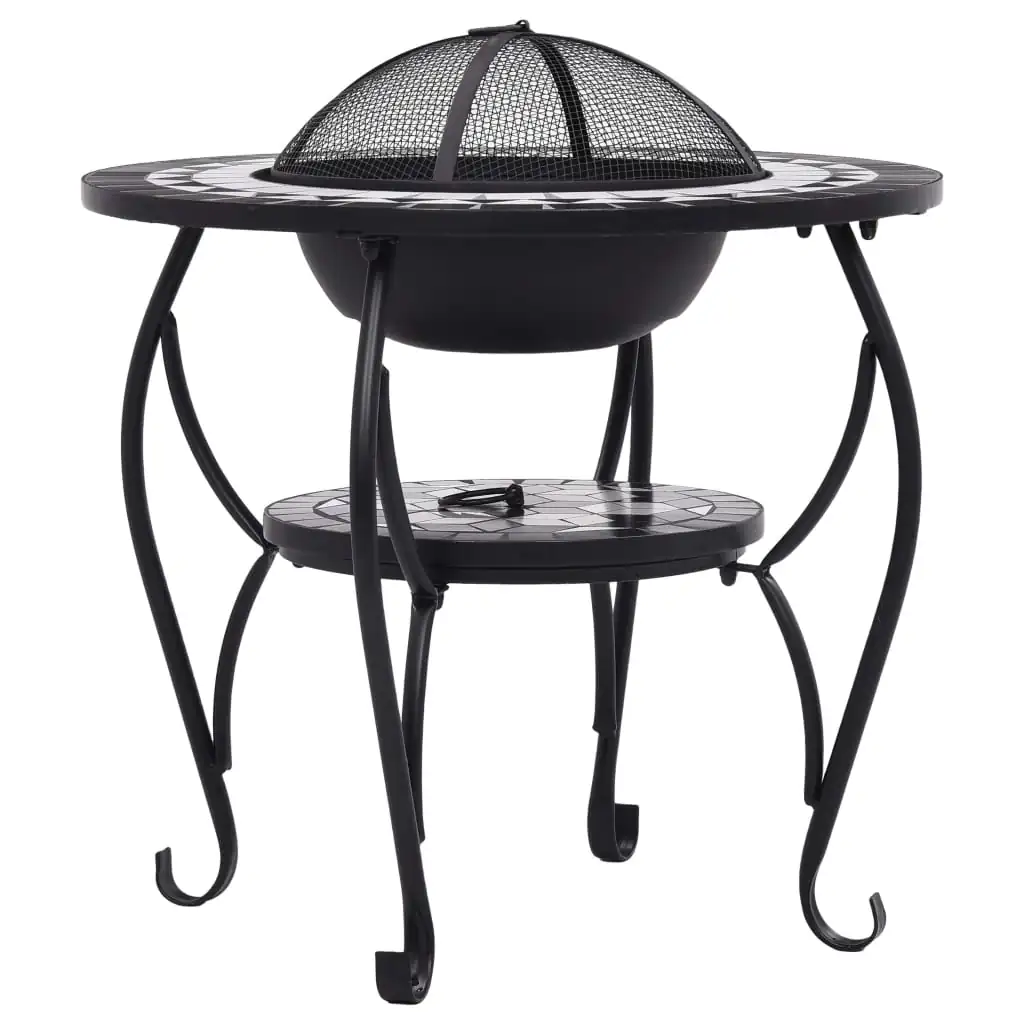 Masă cu vatră de foc, mozaic negru și alb, 68 cm, ceramică