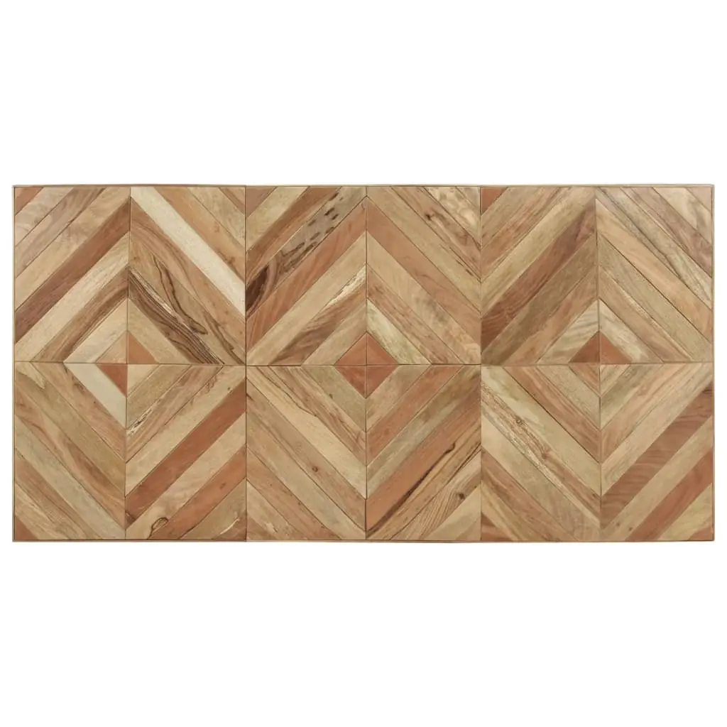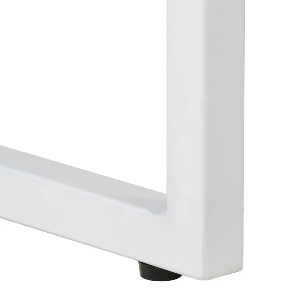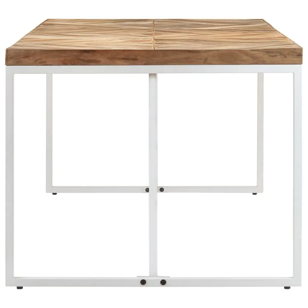 Fabricată manual din lemn masiv de acacia și mango, această masă de bucătărie este foarte stabilă și durabilă. Picioarele albe din oțel vopsit electrostatic îi oferă o stabilitate suplimentară. Blatul robust are un design tip chevron și mozaic, ceea ce îl face un decor special pentru interiorul dvs. De asemenea, poate fi folosit pentru a plasa băuturi sau gustări.