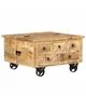 Această măsuță de cafea din lemn are un stil industrial și emană un farmec vintage care va aduce un plus atemporal casei dvs. Are un blat lat din lemn masiv și este echipat cu patru roți pentru o mobilitate ușoară. Poate fi folosită și ca masă de canapea, masă de sufragerie, măsuță laterală etc.
