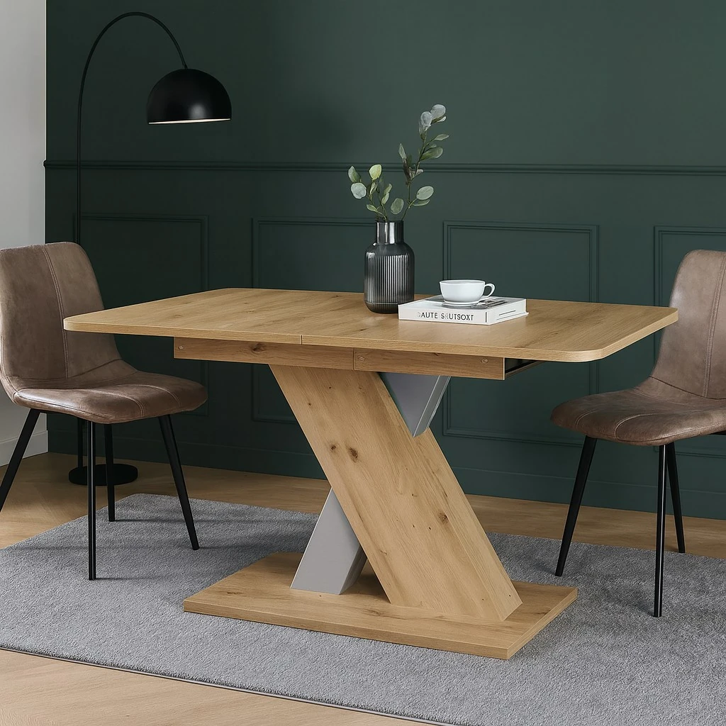 Masa extensibilă Exel în finisaj stejar și gri este alegerea ideală pentru interioare moderne, oferind versatilitate, eleganță și funcționalitate într-un singur produs.