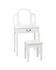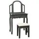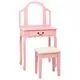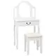 Această toaletă, cu o oglindă ovală și un scăunel, este un adevărat punct de atracție pentru orice dormitor. Sertarul oferă mult spațiu pentru depozitarea articolelor cosmetice de care aveți nevoie în fiecare zi. Scaunul cu o căptușeală groasă vă permite să stați confortabil, în timp ce vă coafați. Când nu este utilizat, acest scaun poate fi depozitat sub masă, pentru a economisi spațiu. În plus, această masă este durabilă și ușor de întreținut.