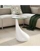 Baza unică, în formă de picătură de apă, în finisaj negru lucios, oferă un aspect elegant mesei. Se potrivește perfect cu o canapea sau sofa, în sufragerie, sau ca masă de capăt, în dormitorul dvs., pentru a vă așeza băuturile sau orice alte lucruri pe care le doriți la îndemână. Blatul este realizat din sticlă securizată, pentru siguranța dvs.