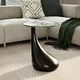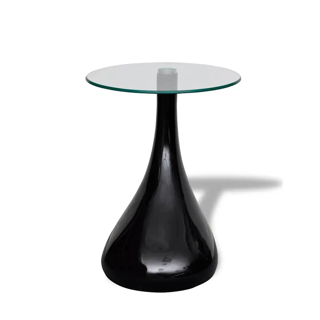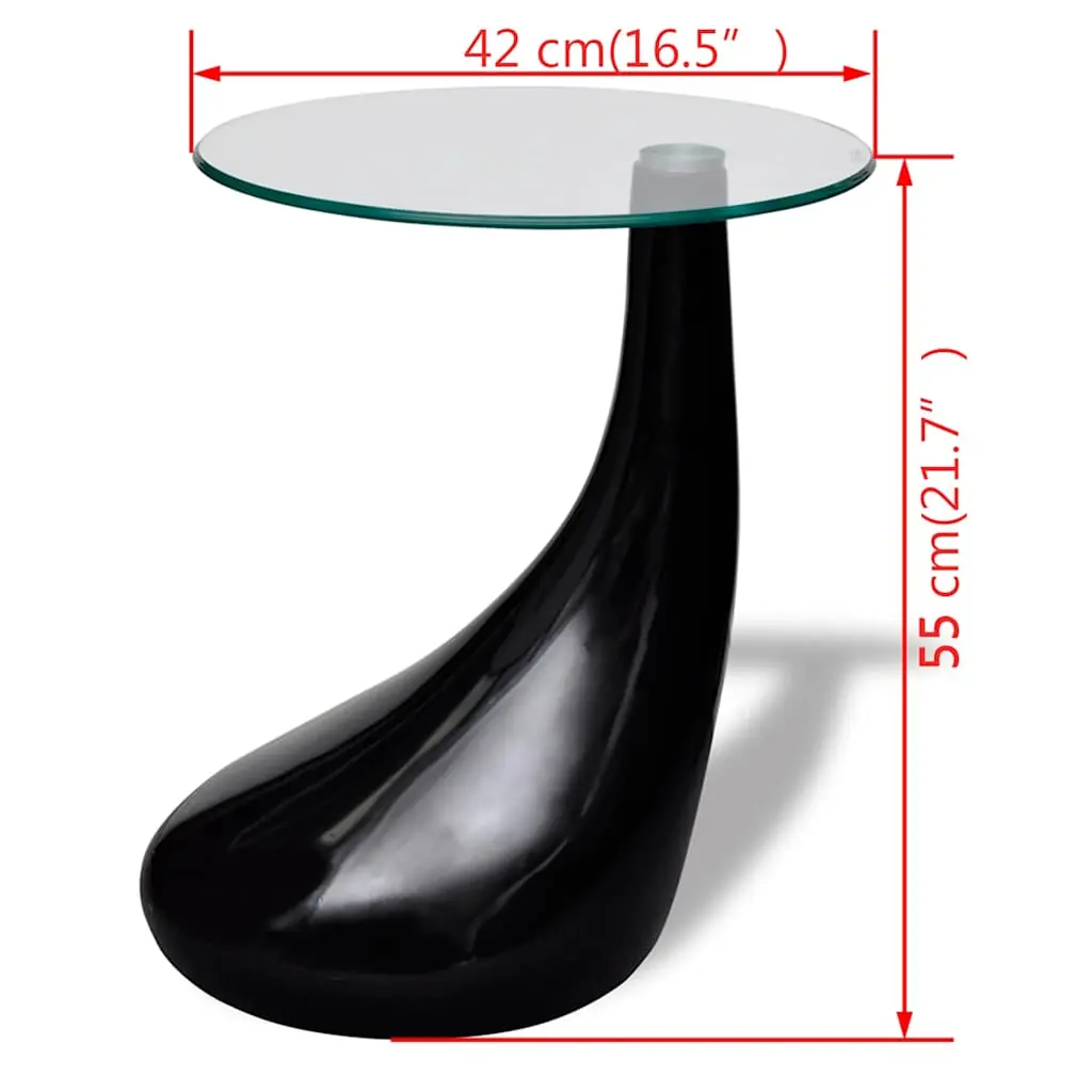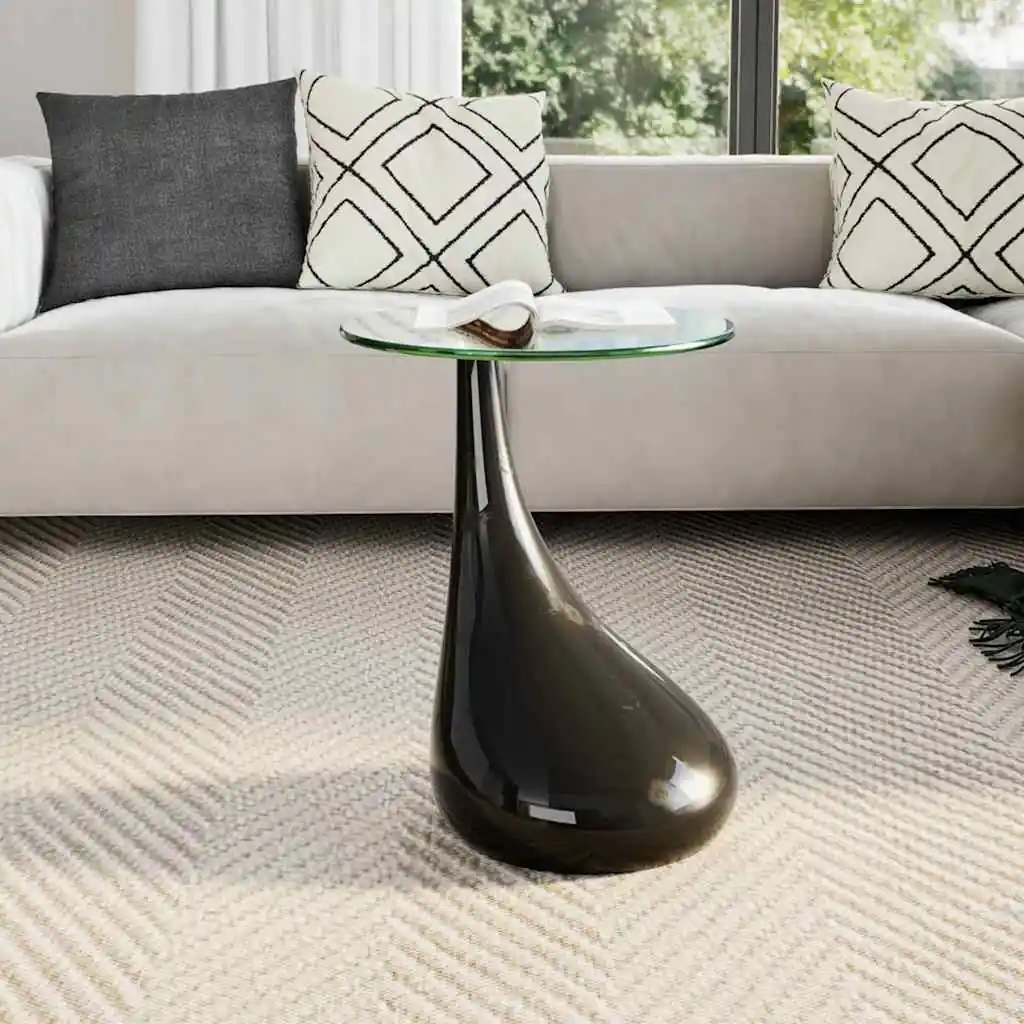 Baza unică, în formă de picătură de apă, în finisaj negru lucios, oferă un aspect elegant mesei. Se potrivește perfect cu o canapea sau sofa, în sufragerie, sau ca masă de capăt, în dormitorul dvs., pentru a vă așeza băuturile sau orice alte lucruri pe care le doriți la îndemână. Blatul este realizat din sticlă securizată, pentru siguranța dvs.