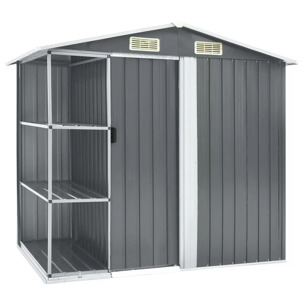 Șopron de grădină cu etajeră, gri, 205 x 130 x 183 cm, fier