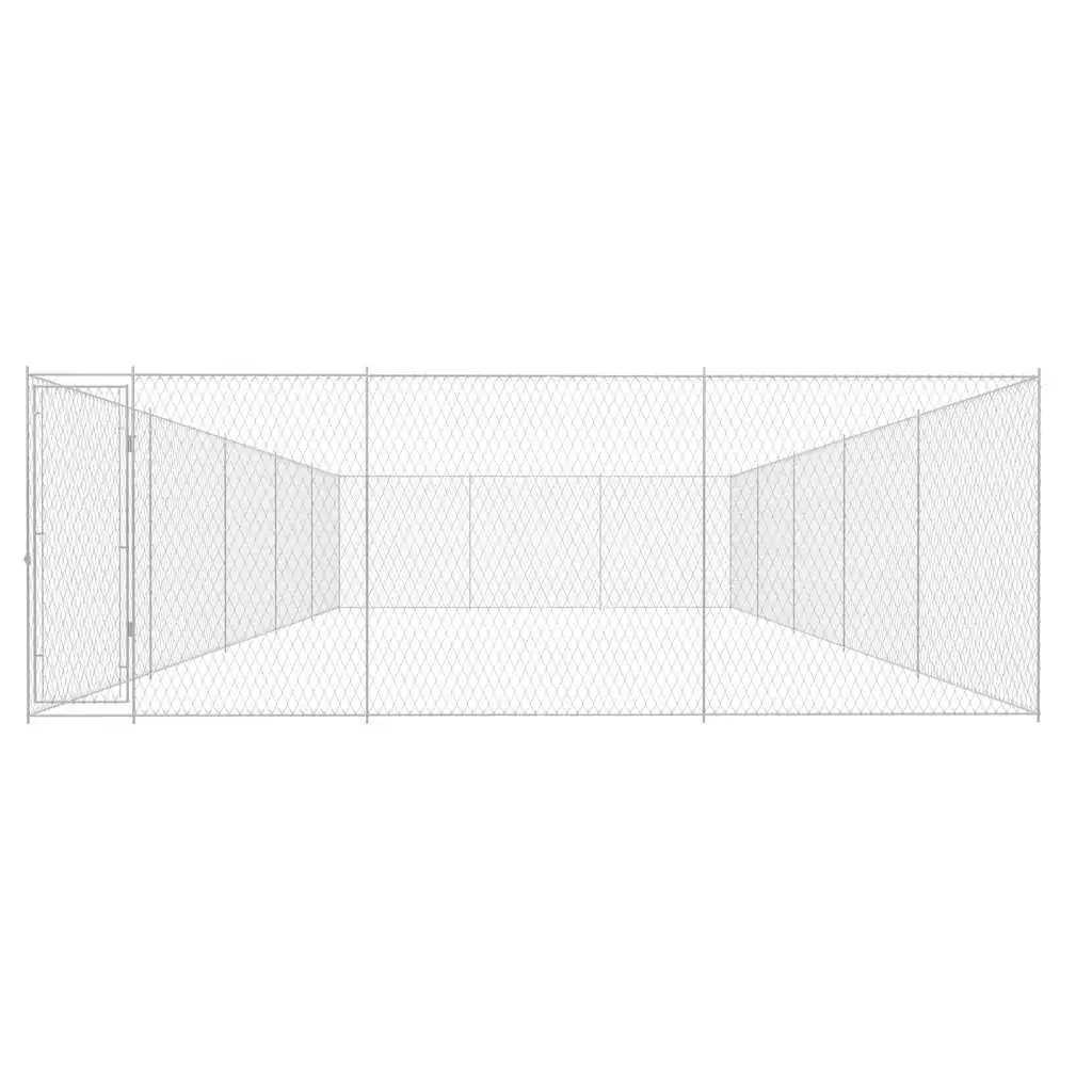 Acest țarc de câini mare oferă un spațiu amplu de mișcare. Împrejmuirea din panouri de sârmă împletită ajută la prevenirea accidentelor neplăcute sau neașteptate, permițând în același timp aerisirea. Datorită construcției solide din oțel, acest țarc de câini de calitate superioară este durabil. Poarta este echipată cu un sistem de blocare, pentru a vă menține câinii în siguranță. Țarcul de câini este ușor de asamblat.