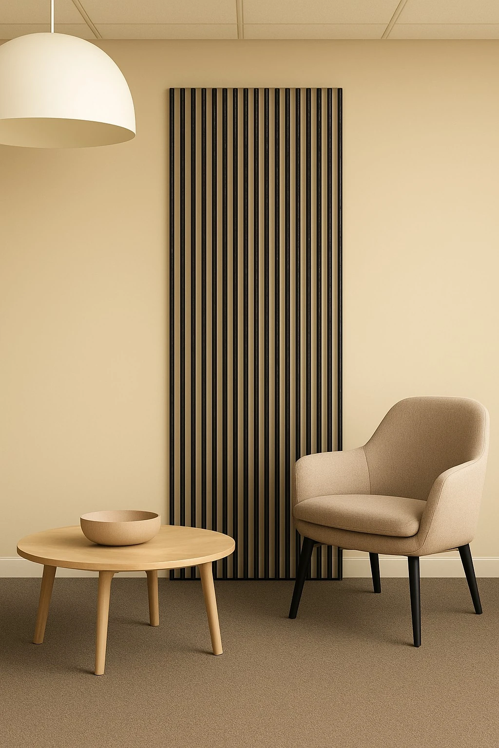 Panoul acustic – riflaj din MDF – se poate folosi pentru crearea unui perete elegant din șipci sau tavan din șipci în casa ta. Produsul este fonoabsorbant, înlătură reverberațiile și reduce semnificativ zgomotul.  Panourile pot fi imbinate intre ele. Nu doar peretii pot fi decorati cu aceste panouri, datorita proprietatilor acustice ele pot fi montate si pe tavan.