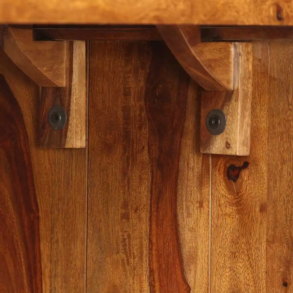 Dulapul/biroul este fabricat din lemn masiv de acacia. Acacia-ul, cunoscut și sub numele de lemn de trandafir sau lemn de palisandru, este un lemn tropical de esență tare, renumit pentru fibrele sale bogate. Este complet realizat manual, iar fibrele frumoase din lemn fac ca fiecare piesă de mobilier să fie unică și ușor diferită una de cealaltă. Cadrul rezistent din lemn contribuie la construcția solidă a dulapului. Asamblarea este foarte ușoară.