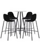 Blatul este fabricat din MDF, fiind ușor de curățat. Cadrul din oțel vopsit electrostatic adaugă stabilitate și rezistență mesei de bar. Scaunele de pub au un șezut cu design ergonomic și spătar integrat, cu un aspect modern, curbat. În plus, acestea sunt ușor de asamblat.
