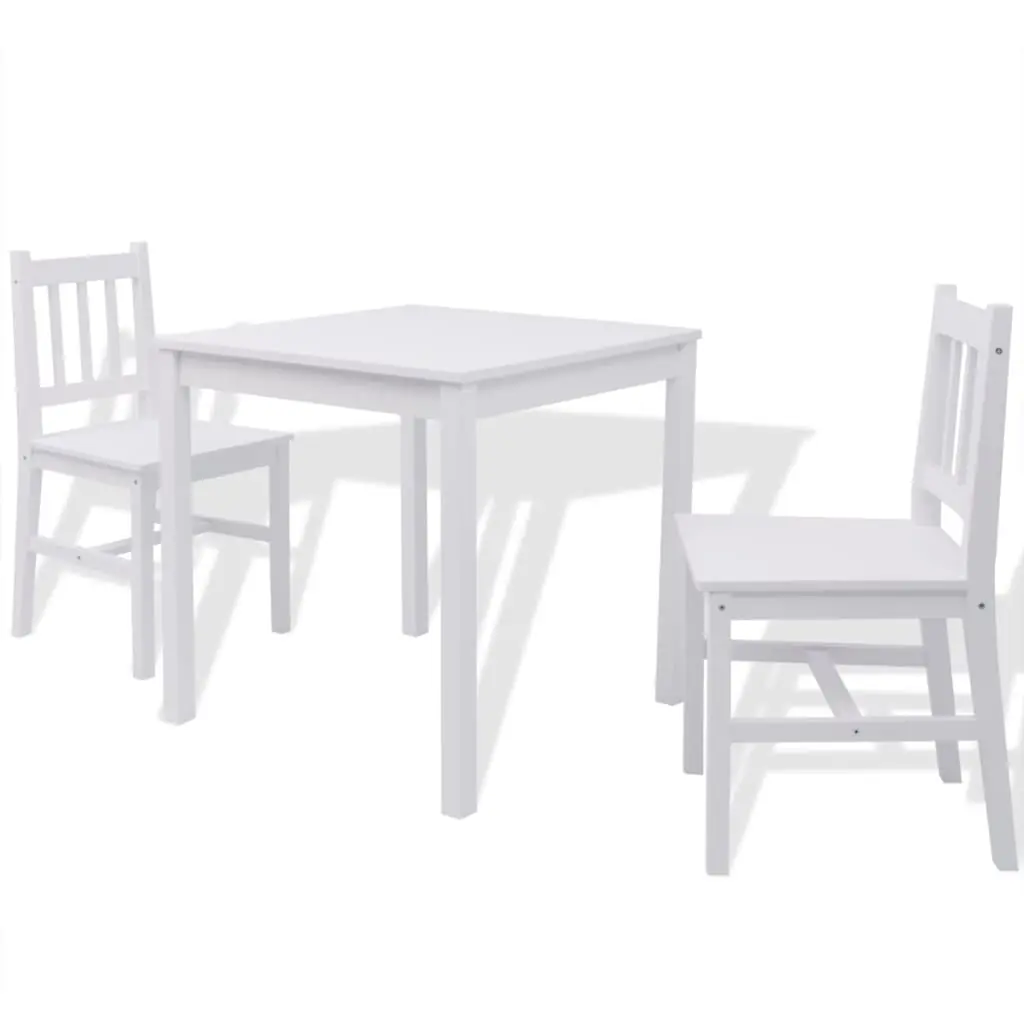 Acest set din lemn pentru servirea mesei, format dintr-o masă și două scaune, are un design minimalist și mereu la modă, ce va adăuga o notă de stil interiorului din casa dvs.