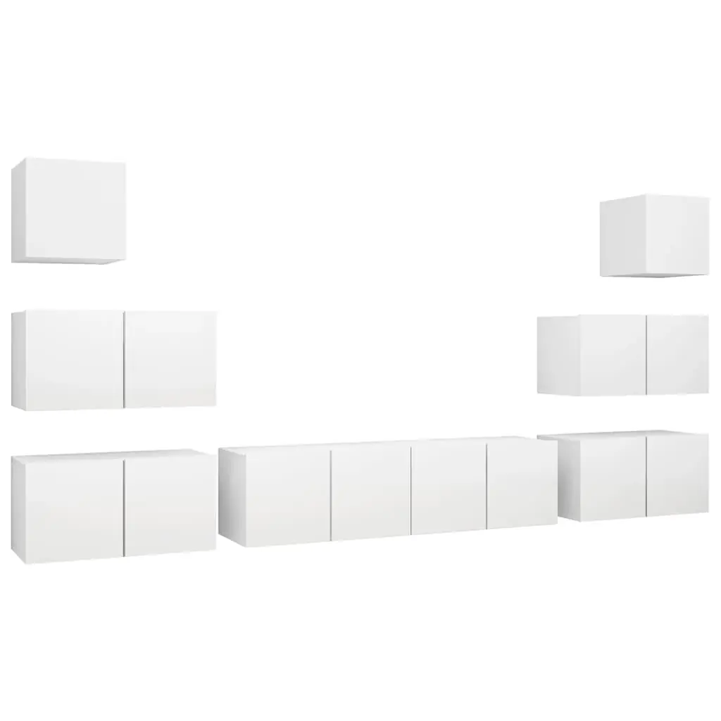 Set dulapuri TV, 8 piese, alb, lemn prelucrat
