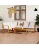 Având un cadru din lemn masiv de acacia, setul de canapele este rezistent, robust și durabil, iar finisajul său în ulei face ca acest set să fie potrivit pentru utilizarea în exterior. Pernele detașabile de șezut și de spate sunt căptușite în strat gros, astfel încât să ofere un confort deosebit. De asemenea, este inclusă o măsuță de cafea, cu un design unic cu șipci. În plus, deoarece setul se distinge prin designul modular, toate piesele pot fi aranjate și personalizate după necesități.