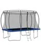Distrați-vă mult și săriți pe această trambulină dreptunghiulară! Acest set de trambulină include în livrare o plasă de siguranță, o scară de intrare și o copertină de ploaie.