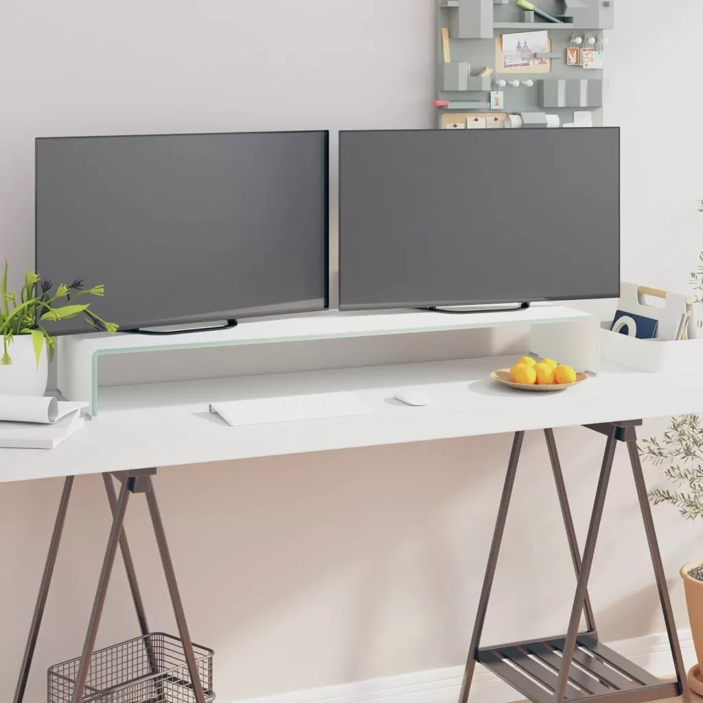 Acest raft de sticlă poate fi utilizat drept stand TV sau ca suport pentru monitor de calculator, televizor, laptop și alte dispozitive multimedia. Prin ridicarea monitorului cu ajutorul raftului din sticlă, veți vedea ecranul mai bine, în timp ce stați confortabil, ceea ce ajută la eliminarea tensiunii din zona gâtului sau a spatelui. În spațiul de dedesubt, puteți așeza un DVD player, o consolă de jocuri, un dispozitiv de streaming, receptoare și dispozitive media.