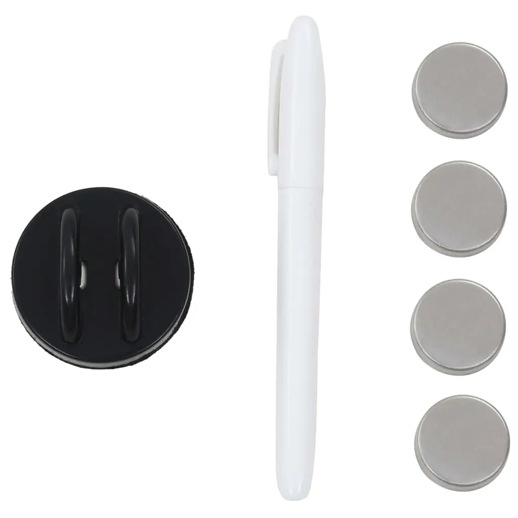 Tabla cu ștergere uscată are o suprafață din sticlă magnetică, securizată, ușor de curățat cu buretele inclus. Sunt incluse materialele necesare de montare pe perete, această tablă de culoare neagră fiind ușor de atașat pe orice perete din casă, birou sau din școală.