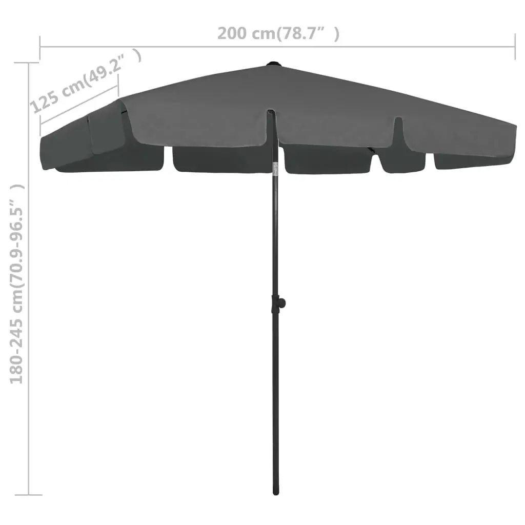 Umbrelă de soare de plajă, antracit, 200x125 cm