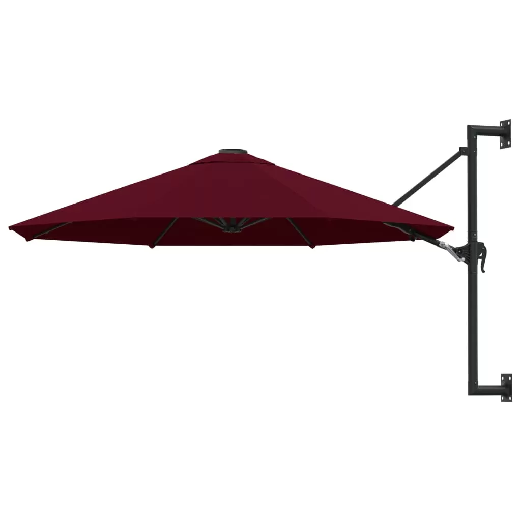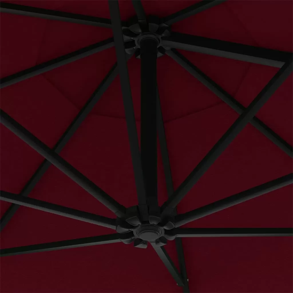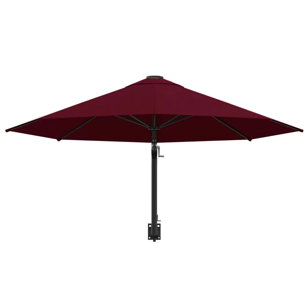 Umbrelă de soare de perete, stâlp metalic, roșu vișiniu, 300cm